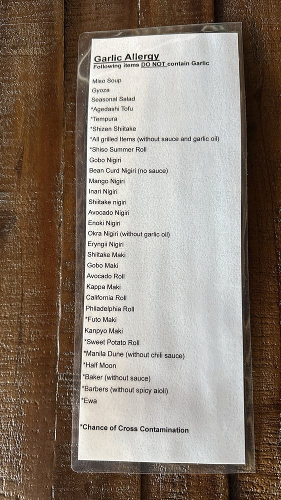 - Starters: Begin with the flavorful Miso Soup or Garlic Edamame, both gluten-free.