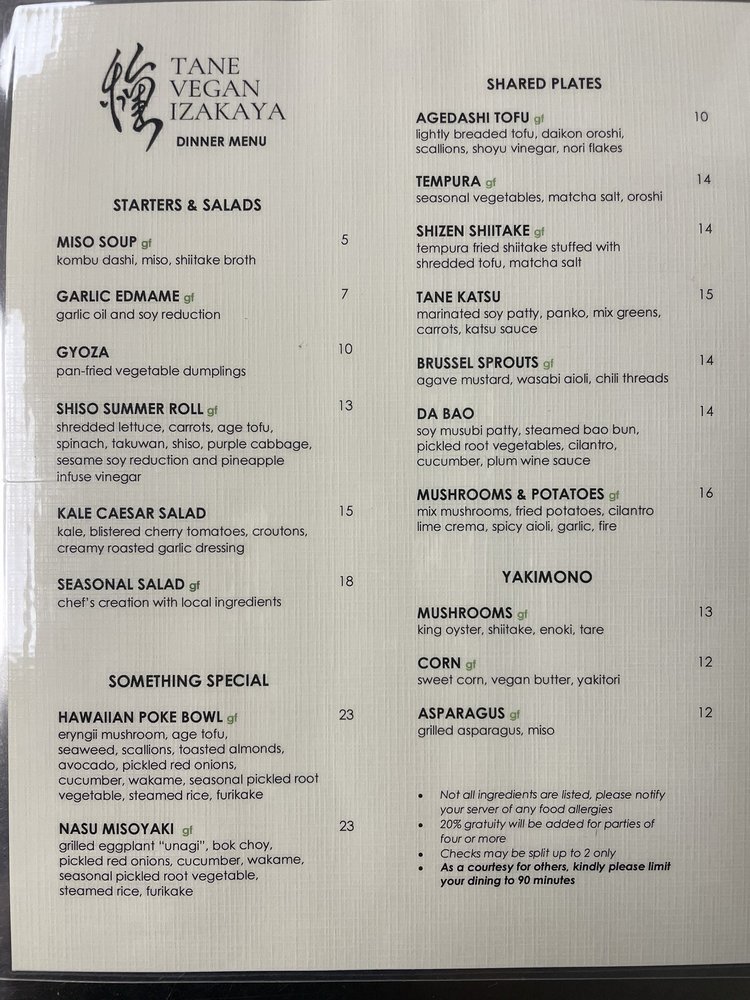 Welcome to Tane Vegan Izakaya, a vibrant dining destination nestled in the heart of Palo Alto, where innovative Japanese cuisine meets vegan creativity. This trendy izakaya offers an impressive menu, featuring options like the rich Goma Miso ramen and a delightful array of signature rolls, each crafted to showcase vegetables at their best without mimicking meat.